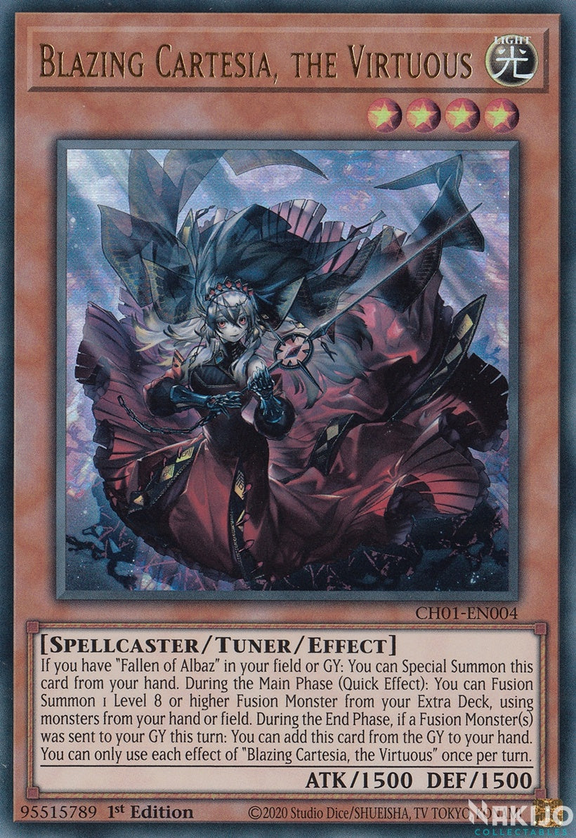Blazing Cartesia, the Virtuous - CH01-EN004 - Ultra Rare - 1st Edition is backordered and will ship as soon as it is back in stock.